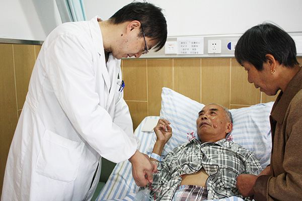 门诊一天里,笔者几乎没有机会跟朱主任交流,直到下午4:05,暂时没有患者进门。听闻最近微信上有一篇很火的心酸作文,一个外科医生的儿子抱怨爸爸在家爱睡懒觉,连狗都讨厌他,朱主任一边哈哈大笑一边点点头:“差不多也是这样吧!一个外科医生从参加工作到主刀一台手术差不多需要十年才能成长起来,现在我一周两天‘上台’,以前还更多,要四天,开一天刀还是很吃力的。另外,每天都要查房,不管是周六周日还是节假日。”刚聊上这几句,朱主任就被催着去参加一个关于医院信息系统升级完善的工作会议了。