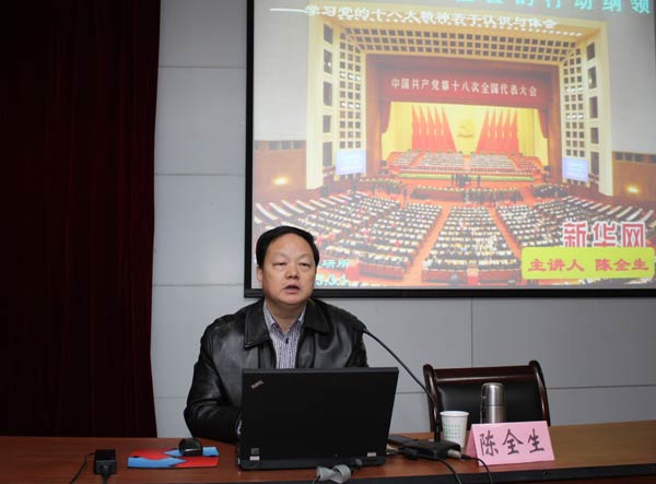 为进一步引导广大干部职工全面把握十八大报告的思想内涵,深入学习领会十八大精神实质,3月1日,我所邀请无锡市委党校陈全生书记来所作《全面建成小康社会的行动纲领——学习党的十八大精神若干认识与体会》的十八大精神辅导报告。本次报告由所党委副书记、纪委书记秦秋萍主持,所领导班子和全体干部职工参加。