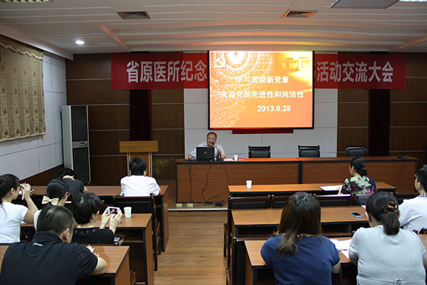 为贯彻落实党的十八大会议精神,深入开展“基层组织建设提升年”活动,创建“三型”党组织,夯实党建基础,所党委于6月28日下午,在所学术报告厅召开纪念建党92周年暨读书活动交流大会。大会由所党委副书记、纪委书记秦秋萍主持,所长罗世能,副所长包建东、谢敏浩出席了会议,全体在职党员和入党积极分子参加大会。