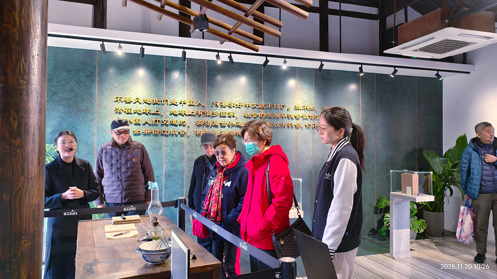 推开积谷仓的木门,老建筑的原有格局完好保留,褪去了“公益存粮”的旧貌,已然变身“储备人才”的精神殿堂。五个主题沙龙空间错落分布,大家站在这里直观感受到,家族“积谷储才”的古老理念,与全会“科技自立自强”的时代要求跨越时空呼应,精神共鸣愈发强烈。