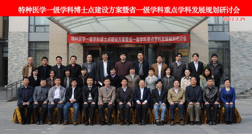 孙新臣教授汇报了特种医学一级学科博士点建设方案及省一级学科重点学科建设规划。学科建设目前包含放射生物学、核医药学、放射毒理学和环境医学四个方向,将放射医学、核医药学和生物技术方面的研究有机地结合起来。通过“十二五”的建设,把学科建设成为在非常时期如放射事故、核事故或核战争发生时,具备危险预警、伤害评估、远期危害、防护处理、医疗救助、放射防护药品研制与开发等综合能力,集科研、教学为一体的特色学科。与会专家就特种医学一级学科博士点建设方案及省一级学科重点学科建设规划展开了热烈而深入的讨论,提出了许多切实可行的建设性意见。