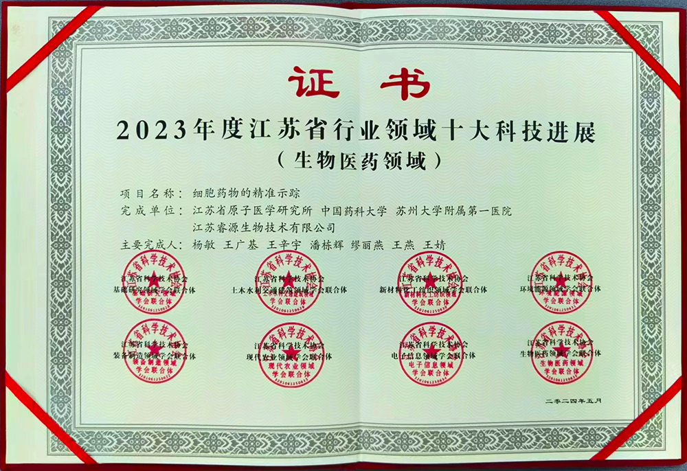 5月28日,由江苏省科学技术协会、江苏省科学技术厅主办的2024年全国科技工作者日江苏省主场活动在南京市举行。会上发布2023年度江苏省行业领域“十大科技进展”。其中,经提名、形式审查、初评、综合评审并向社会公示,确定最终8项研究成果入选2023年度江苏省生物医药领域“十大科技进展”。我所杨敏研究员团队项目成果“细胞药物的精准示踪”载誉入选。