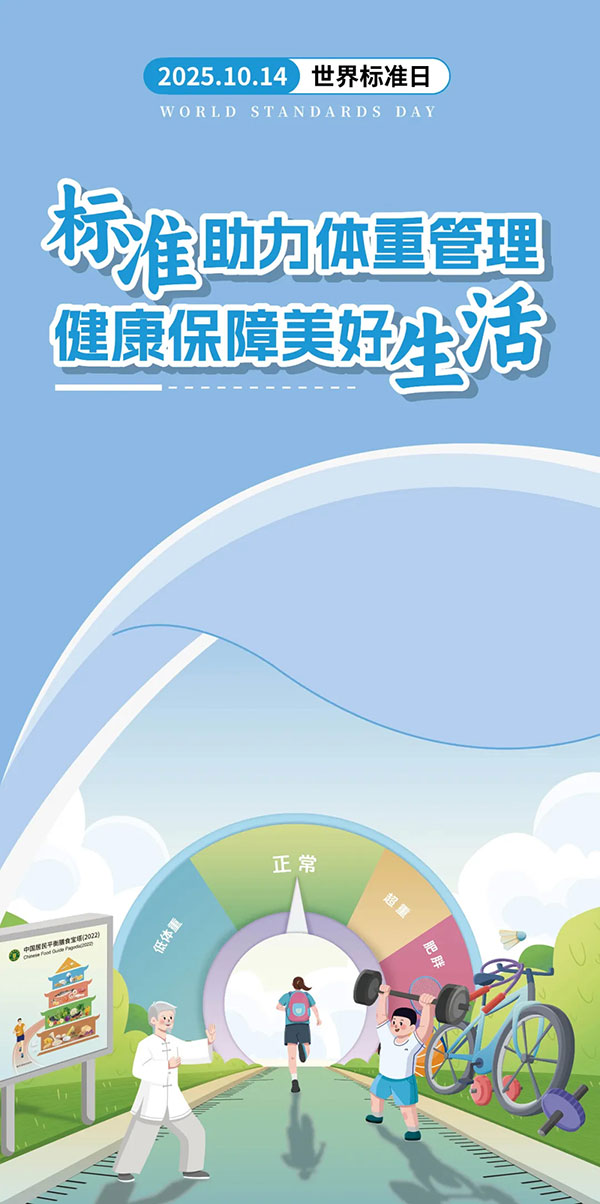 2025年10月14日是第56届世界标准日,国家卫生健康委确定“标准助力体重管理,健康保障美好生活”为今年宣贯主题。体重作为影响健康的重要指标,其科学管理需兼顾不同人群的生理特点、生活场景与健康需求,不同人群体重管理目标怎么定?膳食营养素参考摄入量标准是什么?怎样做到科学锻炼,负荷有度?一起来看——